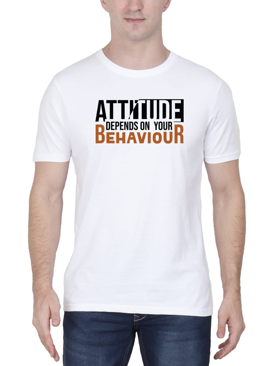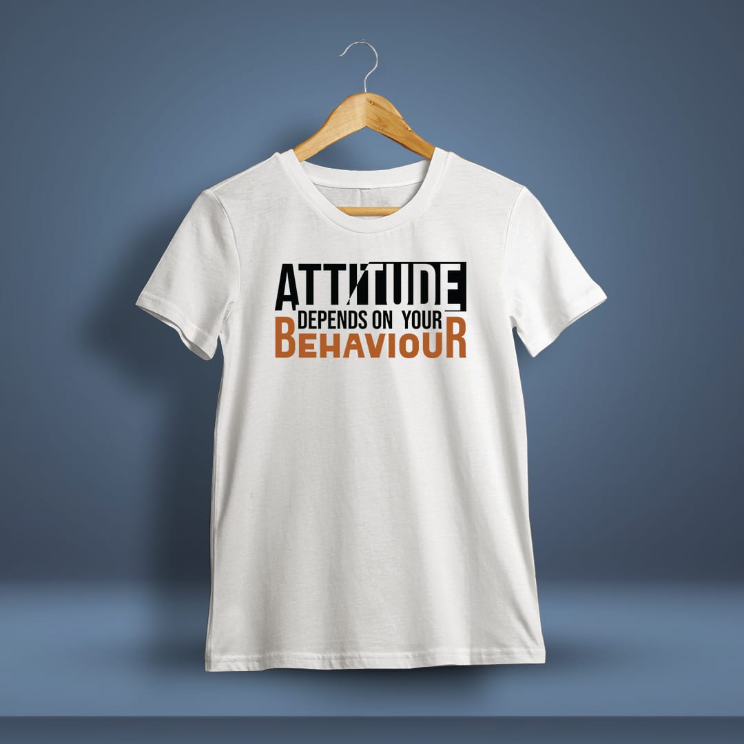 The “Attitude Depends On Your Behaviour” T-shirt is a stylish statement piece, blending comfort with bold messaging. Ideal for those who value self-expression.