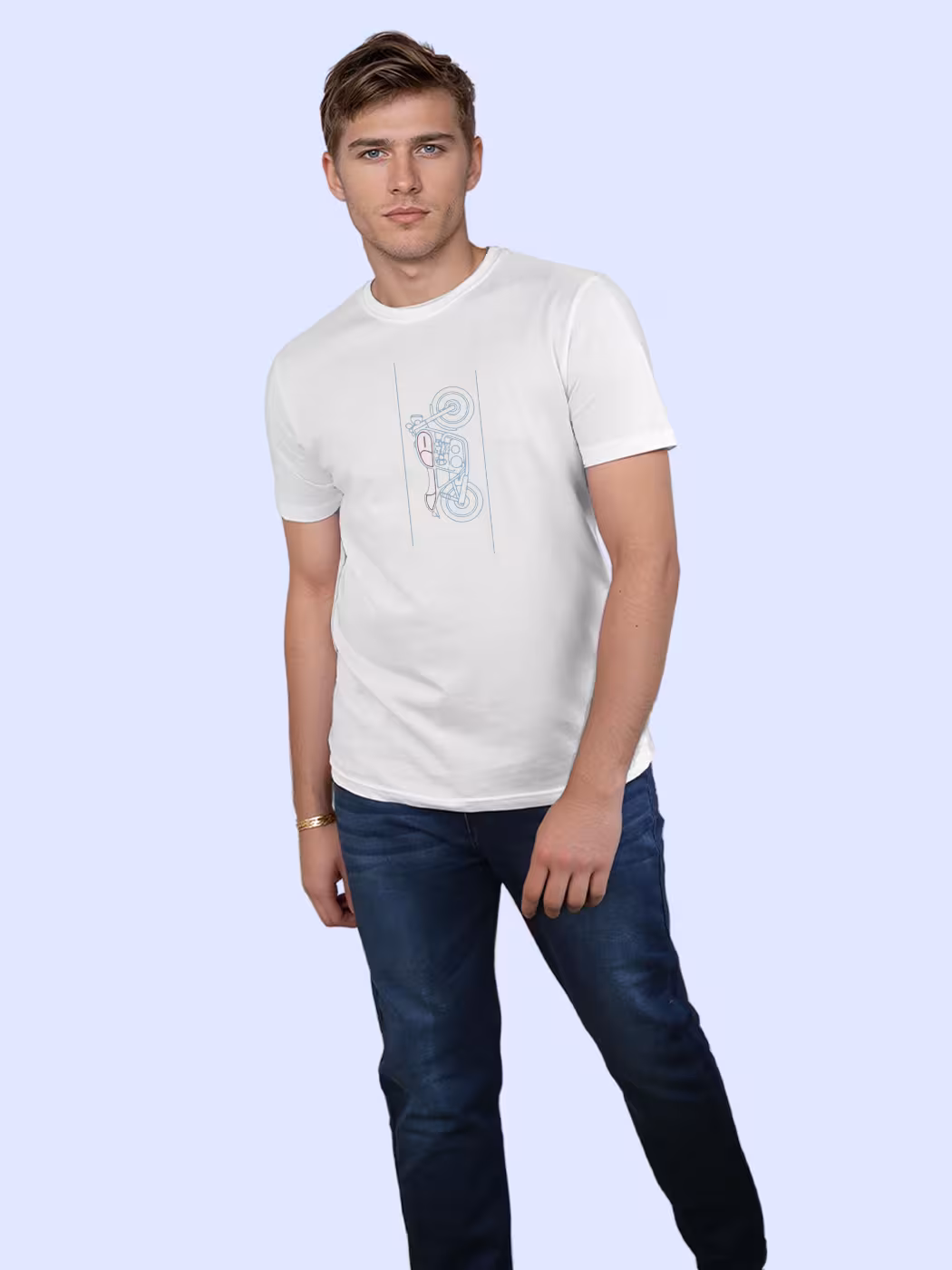 The Bike Minimal Line Art T-Shirt For Men – Half Sleeve blends style and comfort with minimalist motorcycle-inspired graphics, soft cotton fabric, and a perfect fit for everyday rides or casual adventures.