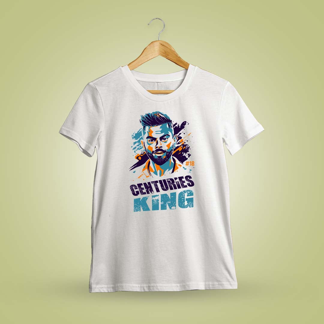 Elevate your cricketing fervor with the Centuries King Virat Kohli T-Shirt. Bold graphics pay tribute to Kohli’s unmatched batting prowess.