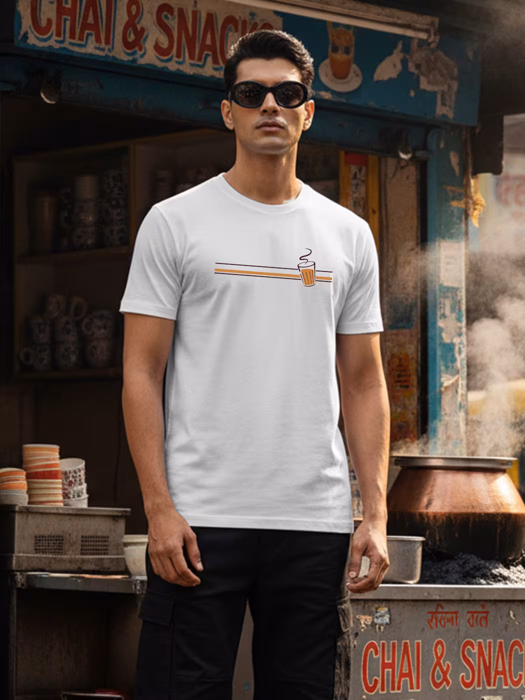 A half-sleeve t-shirt designed for true chai enthusiasts, combining soft fabric with trendy design, making it ideal for everyday wear or relaxed hangouts with friends.