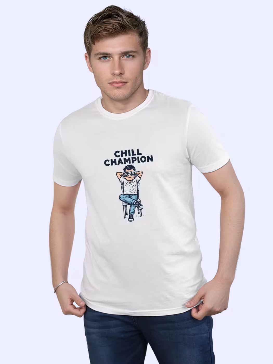 Chill Champion T-Shirt for men with half sleeves. Perfect blend of comfort and casual style. Ideal for everyday wear, parties, or gifting.