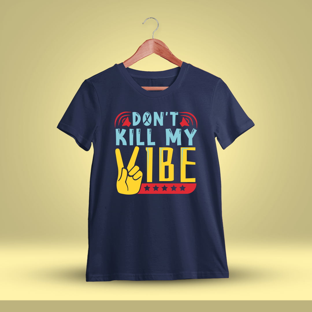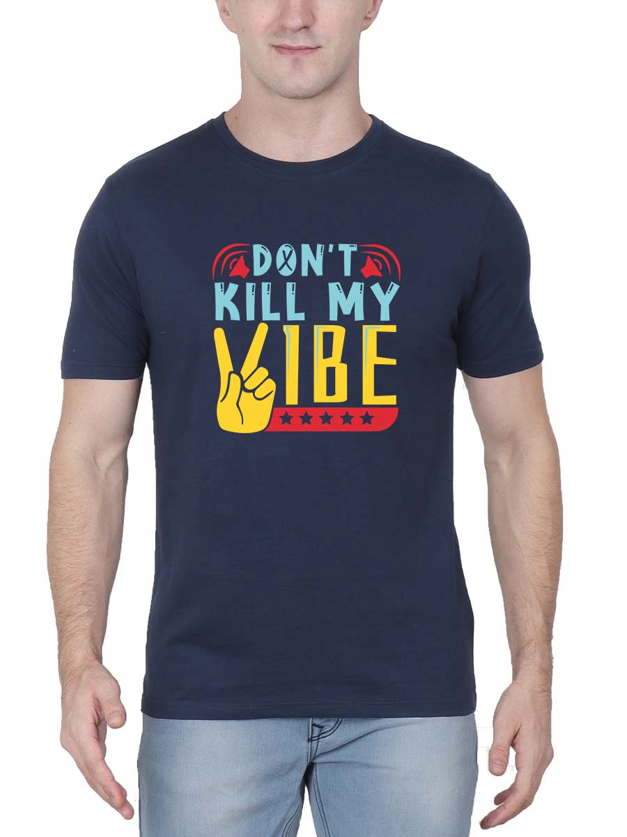 Unleash your cool attitude with our Men’s Half Sleeve ‘Don’t Kill My Vibe’ Navy Blue T-Shirt. Printed on soft cotton for ultimate comfort