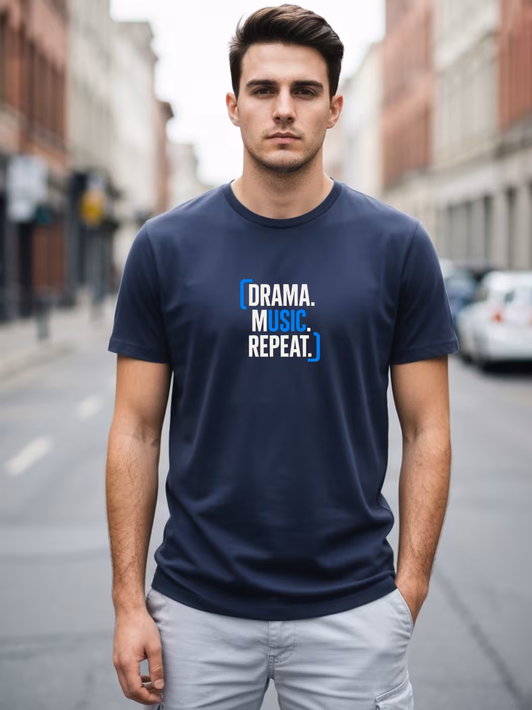 Drama, music, repeat—this half sleeve tee captures life’s ultimate rhythm. Ideal for men who embrace storytelling, rhythm, and expressive fashion.
