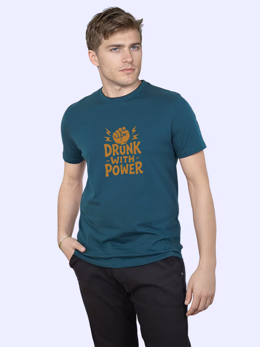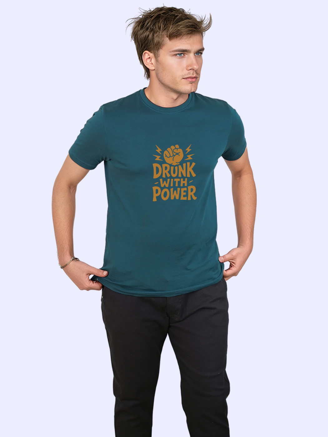 Drunk With Power T-Shirt for men with half sleeves. Perfect blend of comfort and casual style. Ideal for everyday wear, parties, or gifting.