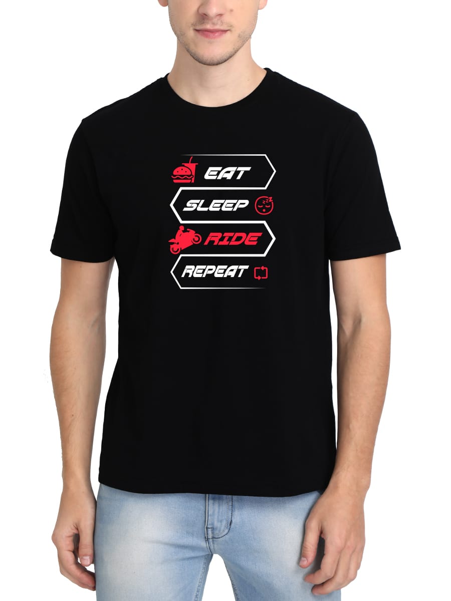 Eat Sleep Ride Repeat” is the perfect t-shirt for those who live for the thrill of the ride. A bold reminder to fuel up, rest, and keep chasing adventure, again and again.