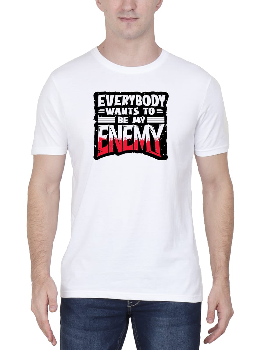 Everybody Wants To Be My Enemy Quotes Printed T-shirt makes a bold statement of confidence and resilience, perfect for those who rise above challenges and negativity.