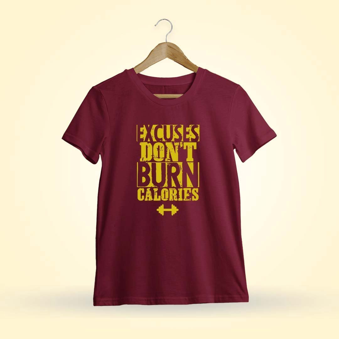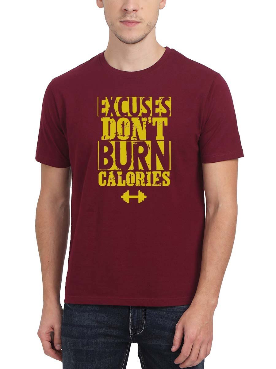 Excuses Don’t Burn Calories ? Stay motivated at the gym with this inspiring tee as Men Half Sleeve T-shirt! Shop Now!