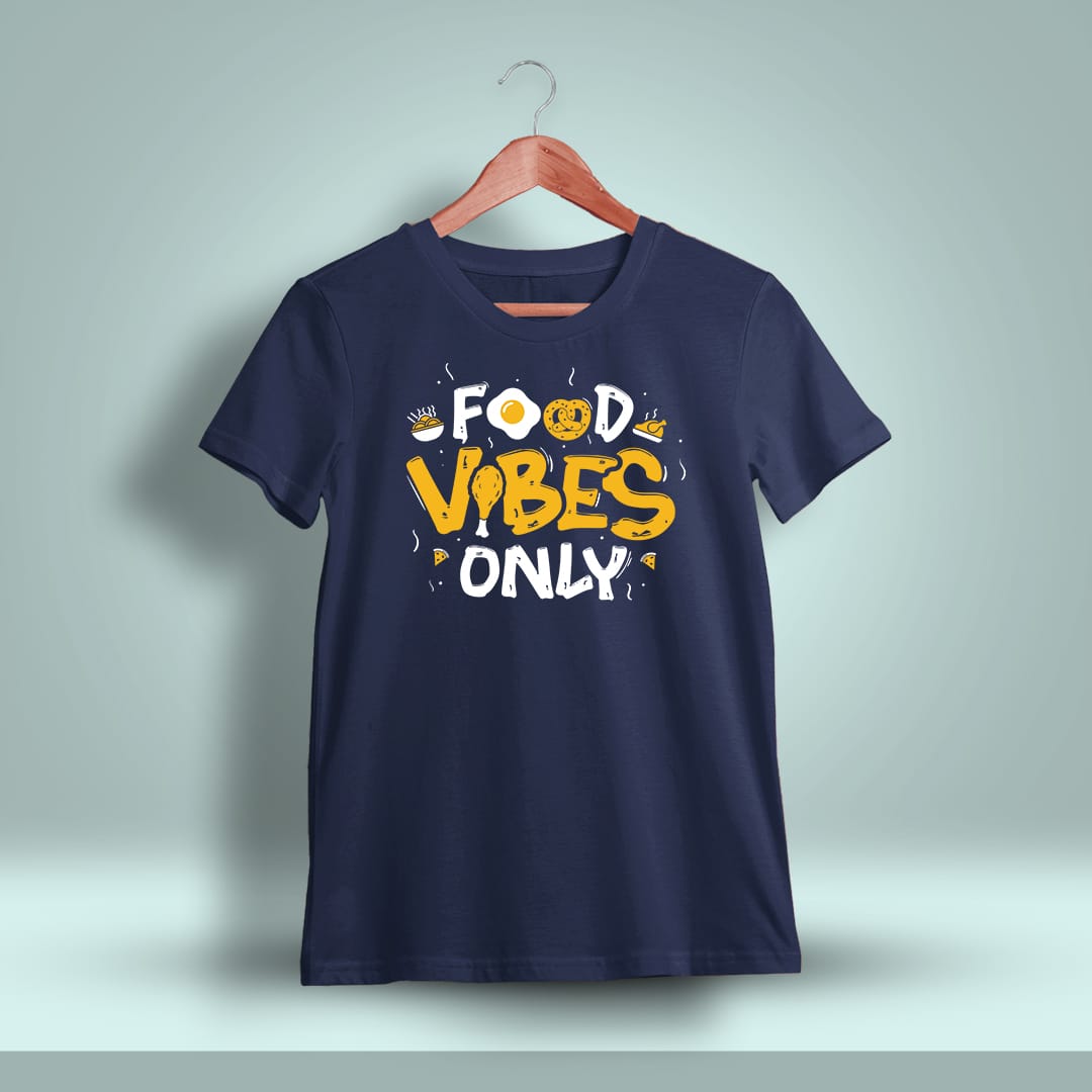 Food Vibes Only T-Shirt features a trendy design with a comfortable fit, ideal for food enthusiasts looking to express their love for all things delicious and fun.