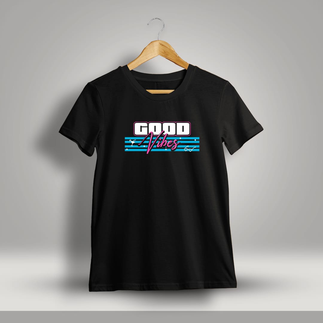 The Good Vibes Chest Print T-Shirt features a bold, uplifting design on the chest, crafted from soft, breathable fabric for everyday comfort and positive style.