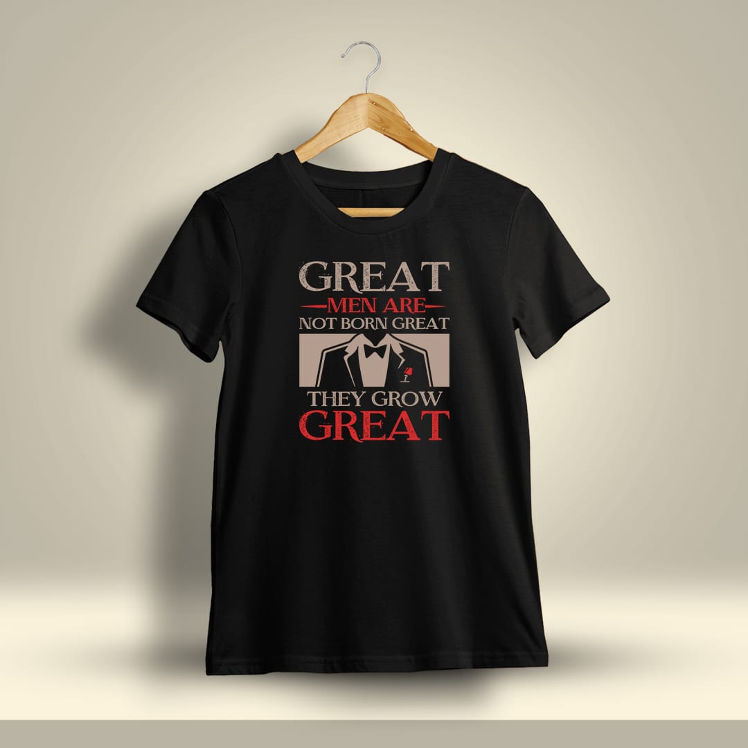 Great Men Are Not Born Great They Grow Great Printed T-shirt inspires ambition and perseverance, reminding you that greatness is built through hard work and determination.