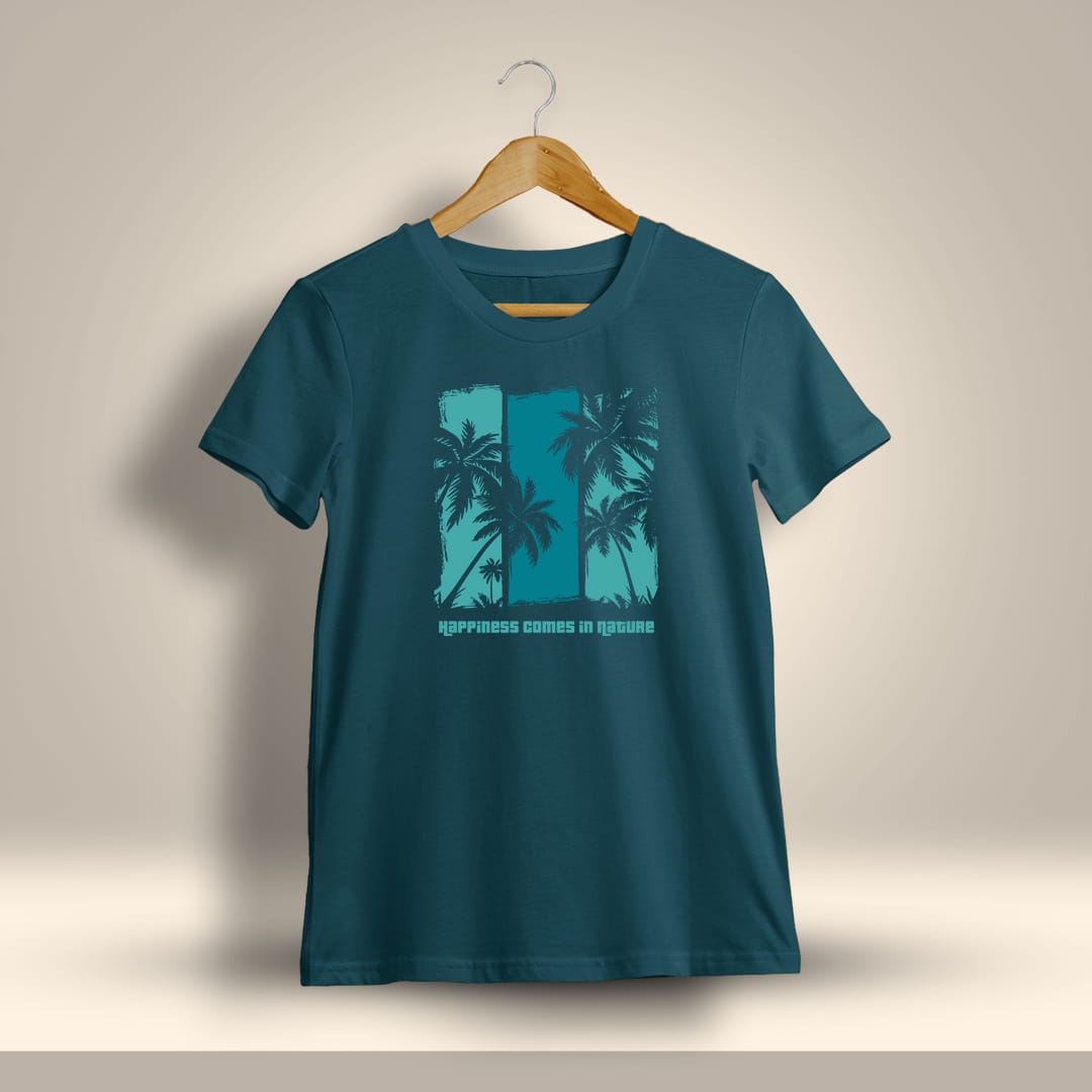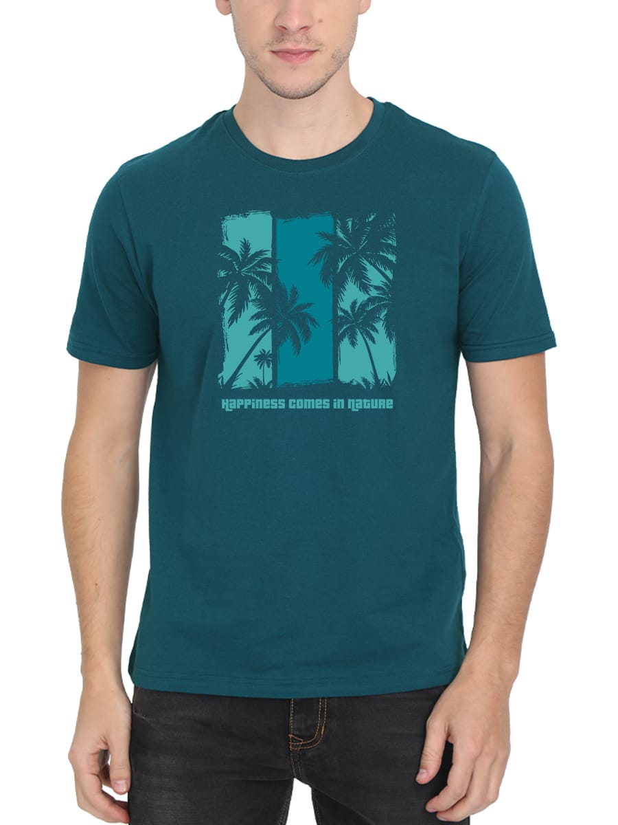 Happiness Comes In Nature Printed T-shirt reflects the joy and peace found in nature, perfect for those who love the outdoors and a refreshing, positive vibe.