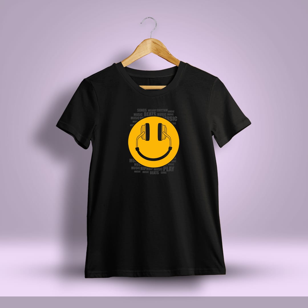 Happy Music Printed T-Shirt captures the joy of melodies with a vibrant design, making it a must-have for music lovers who live in rhythm and harmony.