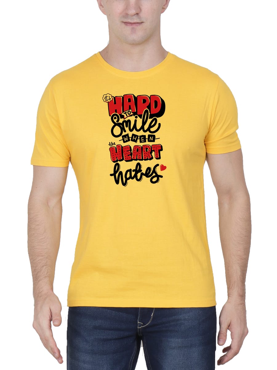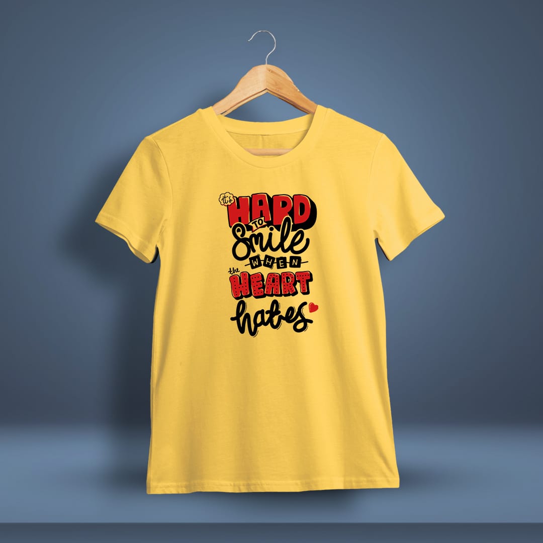 Express deep emotions with this It’s Hard To Smile When The Heart Hates Quotes Printed T-Shirt, designed for those who carry unspoken pain and silent strength.