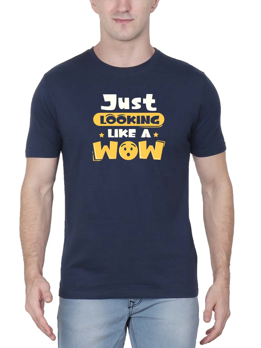 Get noticed effortlessly with our “Just Looking Like A Wow” Men Half Sleeve T-shirt! Elevate your style and make a statement wherever you go.