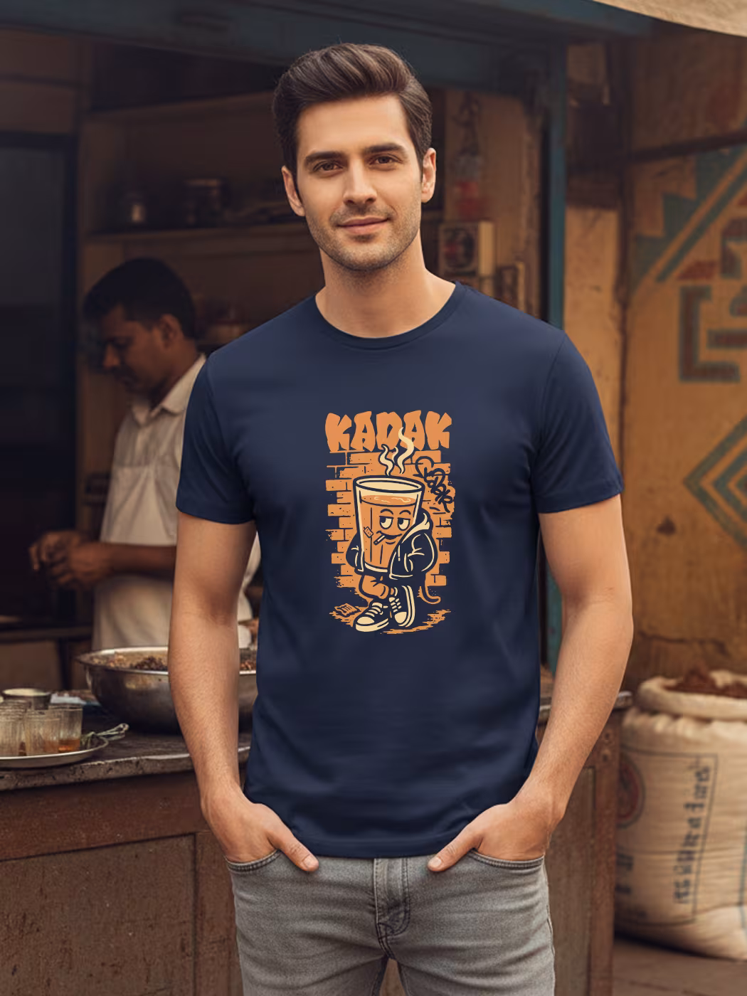Bold and comfy, this Kadak half-sleeve t-shirt reflects strength and energy, perfect for casual wear while embracing the essence of strong, flavorful chai in style.