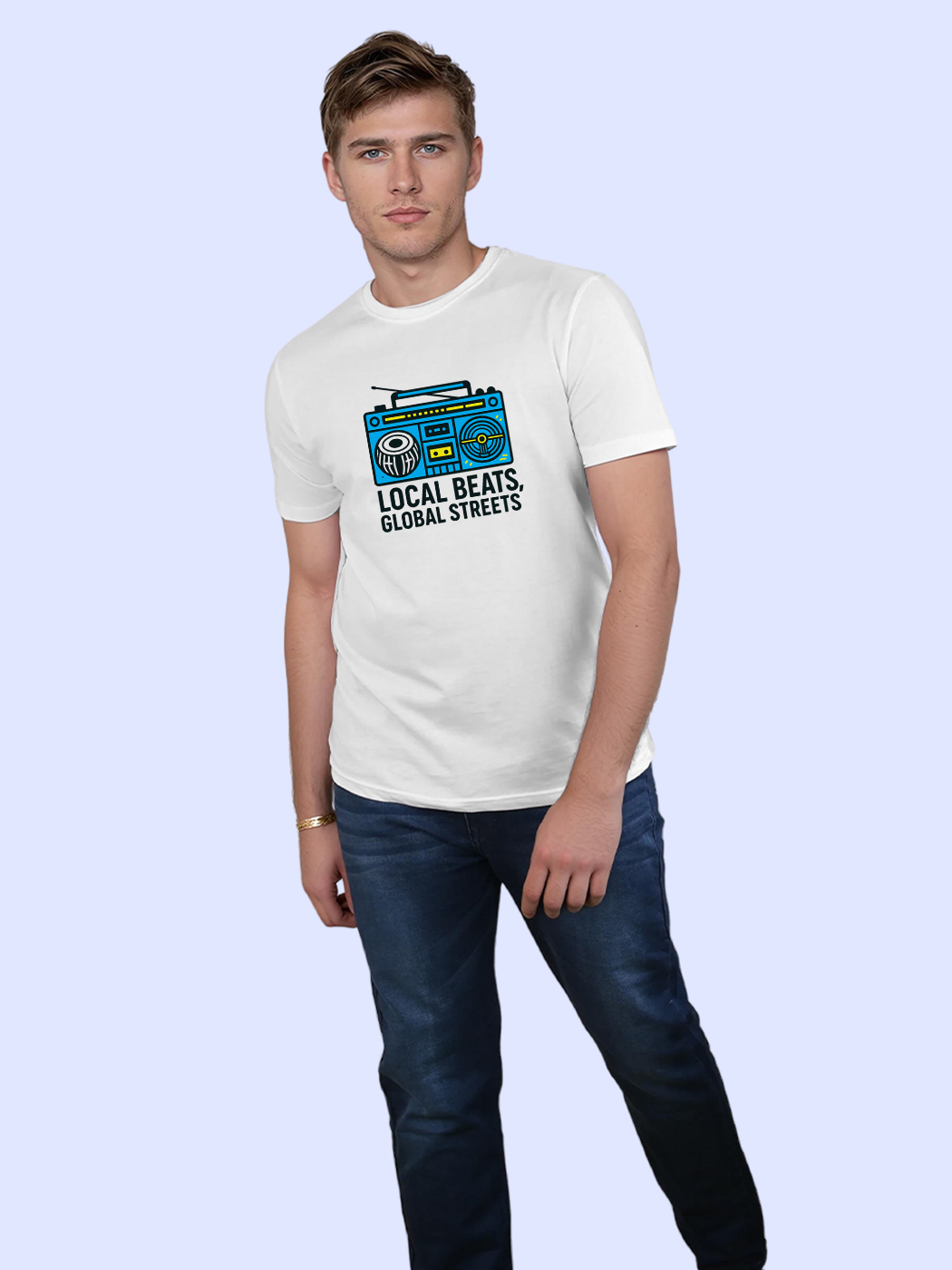 Celebrate local beats with this trendy half sleeve tee. A bold design for men who take pride in regional rhythms and cultural sounds.