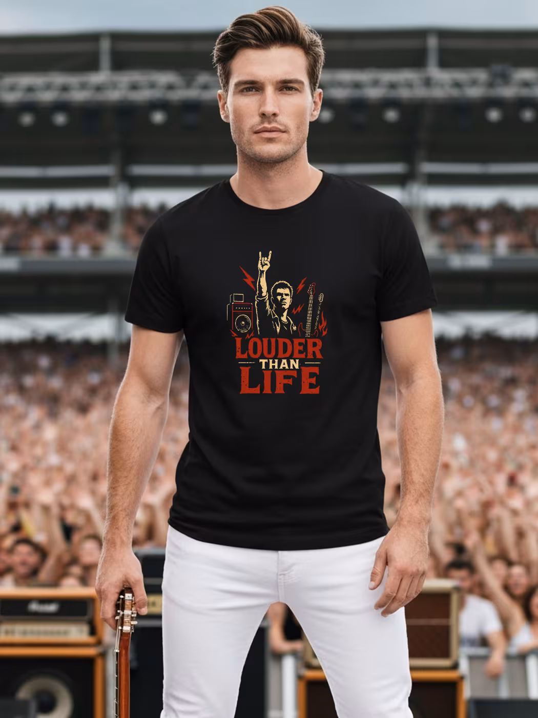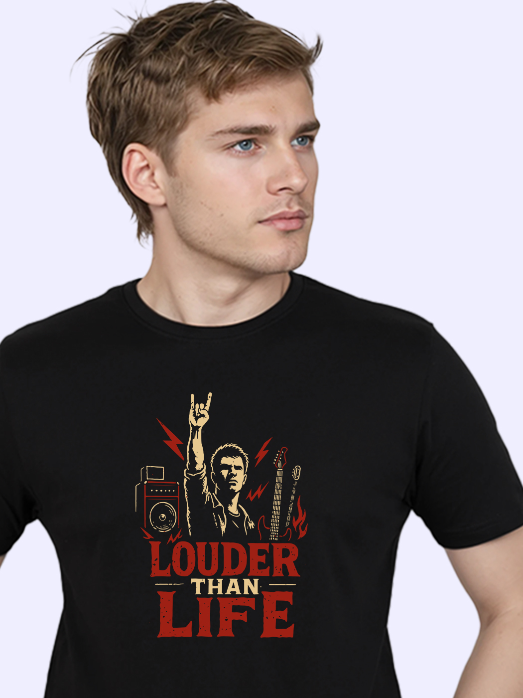 Louder than life—this bold half sleeve tee is perfect for men who live to amplify energy, beats, and fearless fashion everywhere they go.