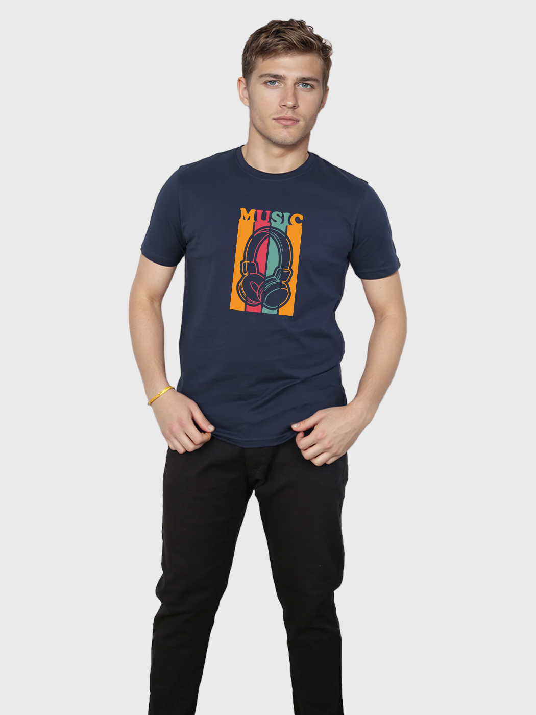 Elevate your style with our Music T-shirt featuring Earphone and musical notes, it’s perfect for music lovers. Men Half Sleeve T-shirt -Get yours now.