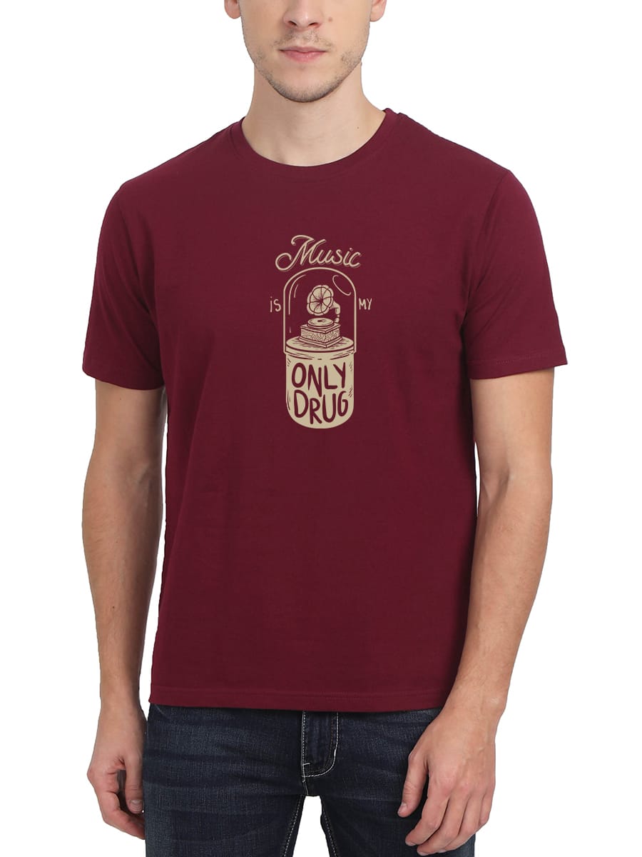 Music Is My Only Drug Printed T-Shirt is a statement piece for true music lovers, crafted from soft cotton with a bold design that celebrates your musical obsession.