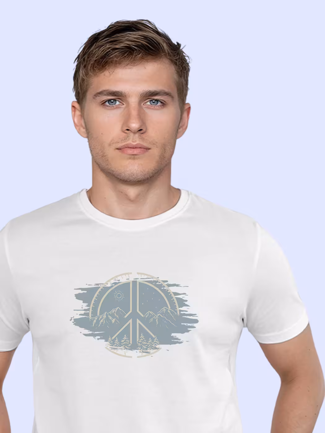 Embrace serenity with the Nature Peace T-shirt, crafted in premium cotton, half sleeves, perfect blend of comfort and style for everyday wear.