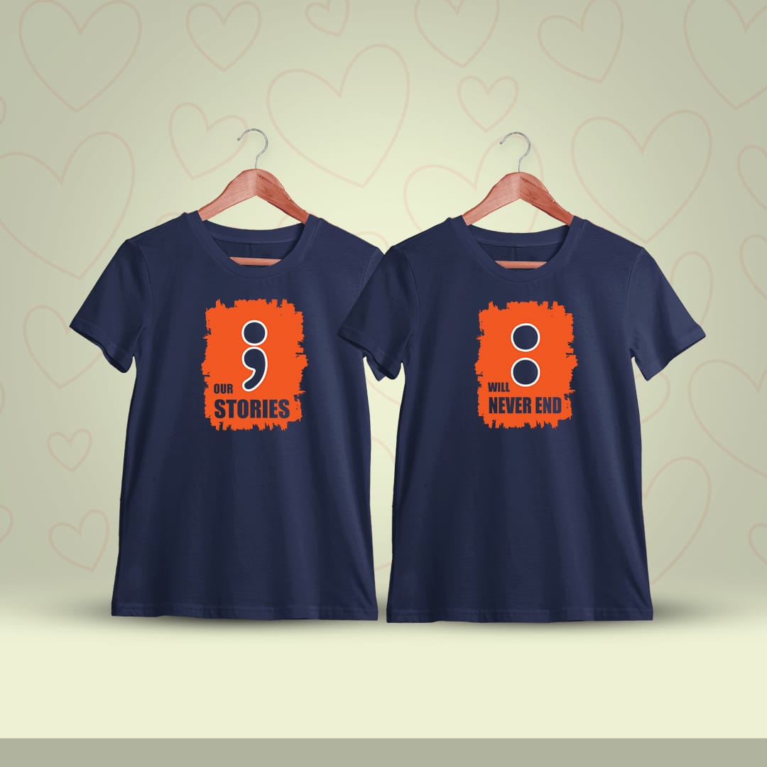 Our Stories Will Never End Couple T-Shirt symbolizes eternal love. Made with premium fabric, it offers comfort and style, celebrating your unbreakable bond beautifully.