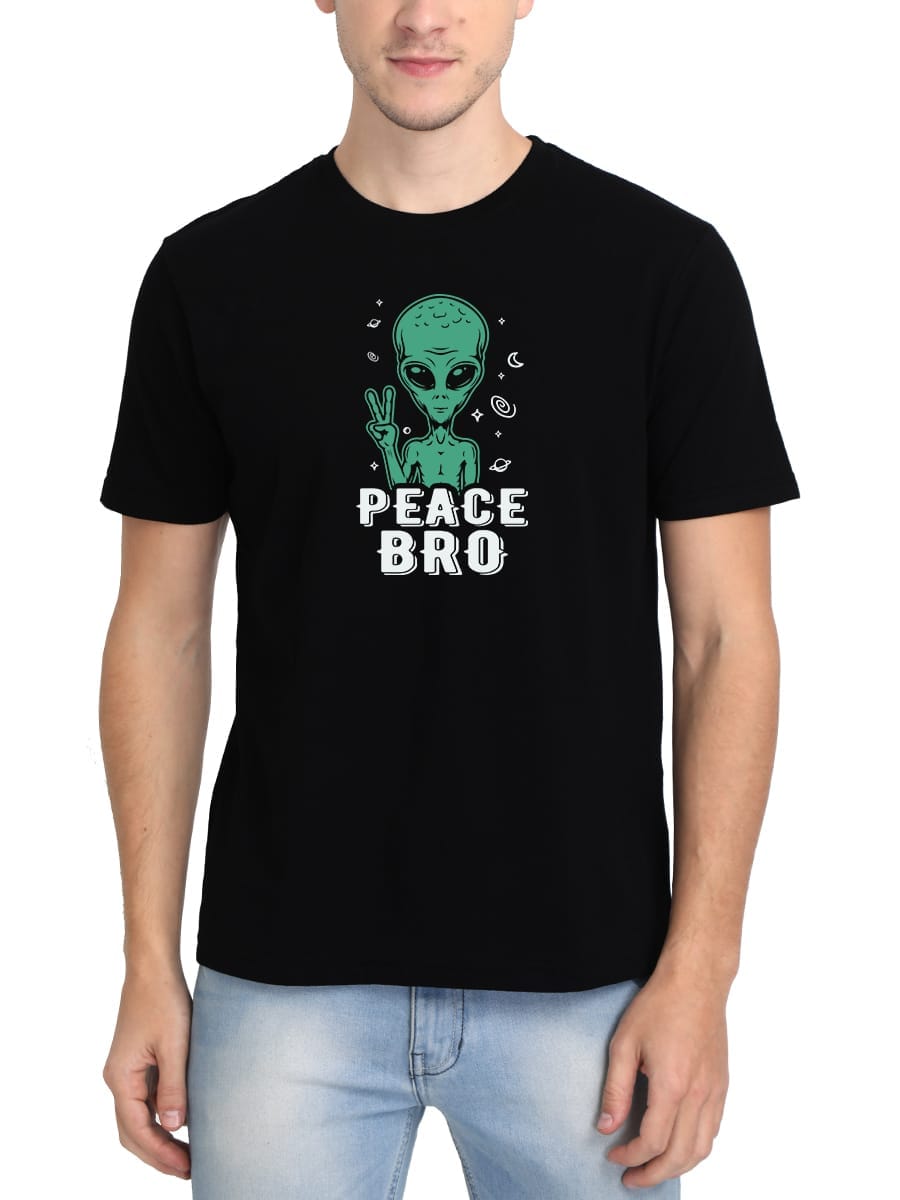 Peace Bro Printed T-Shirt spreads chill vibes with a simple yet bold design, perfect for those who believe in keeping life peaceful and stress-free.