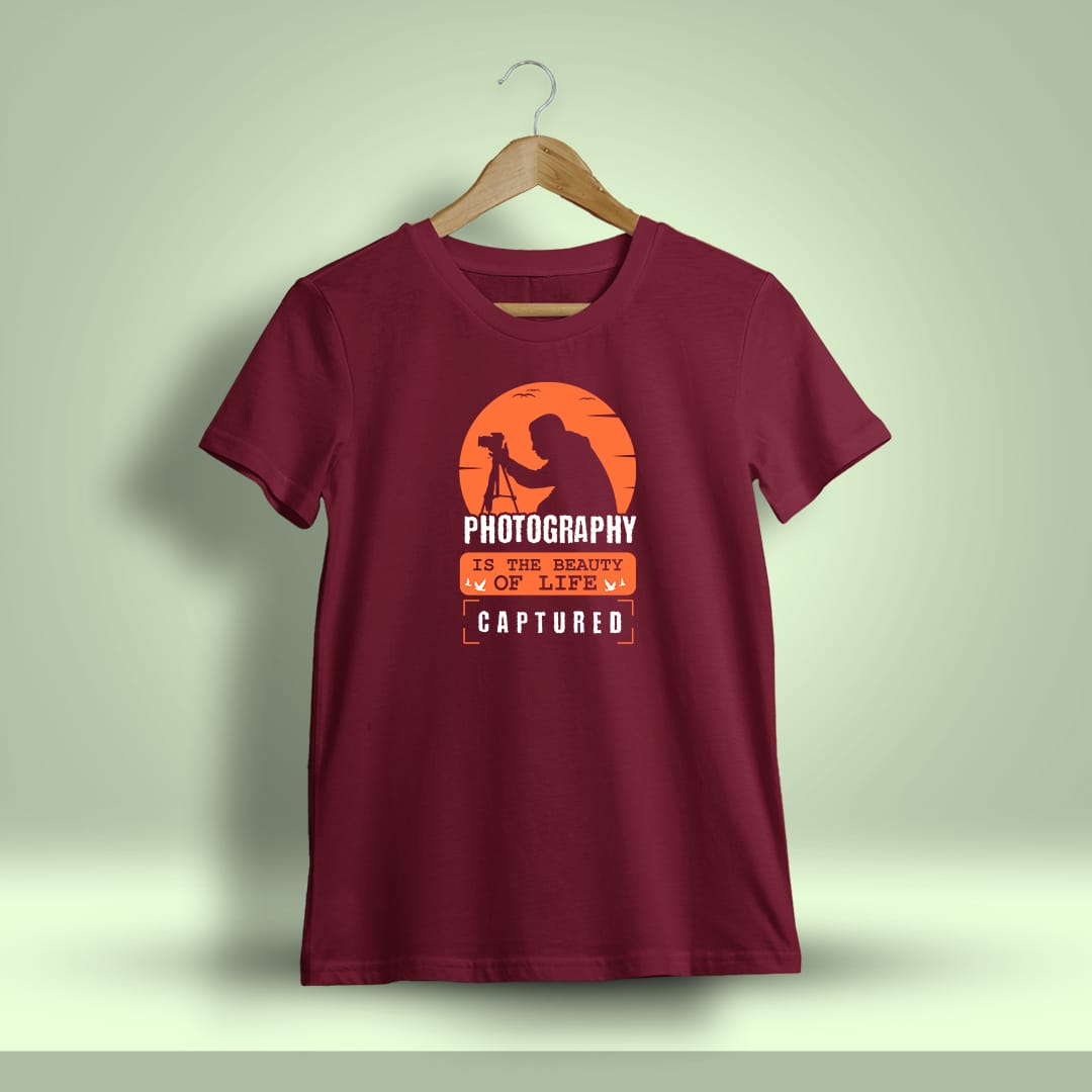 Celebrate your passion with this Photography Is The Beauty Of Life Printed T-Shirt, a perfect choice for photographers and creative minds who see beauty in frames.