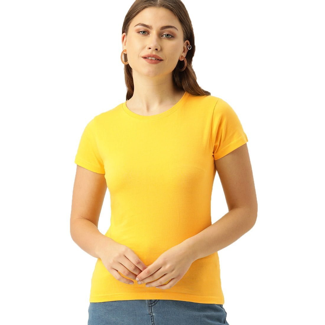Stylish Solid Round Neck Plain T-shirt: Classic simplicity. Versatile style. Available as Women Half Sleeve. Shop now!