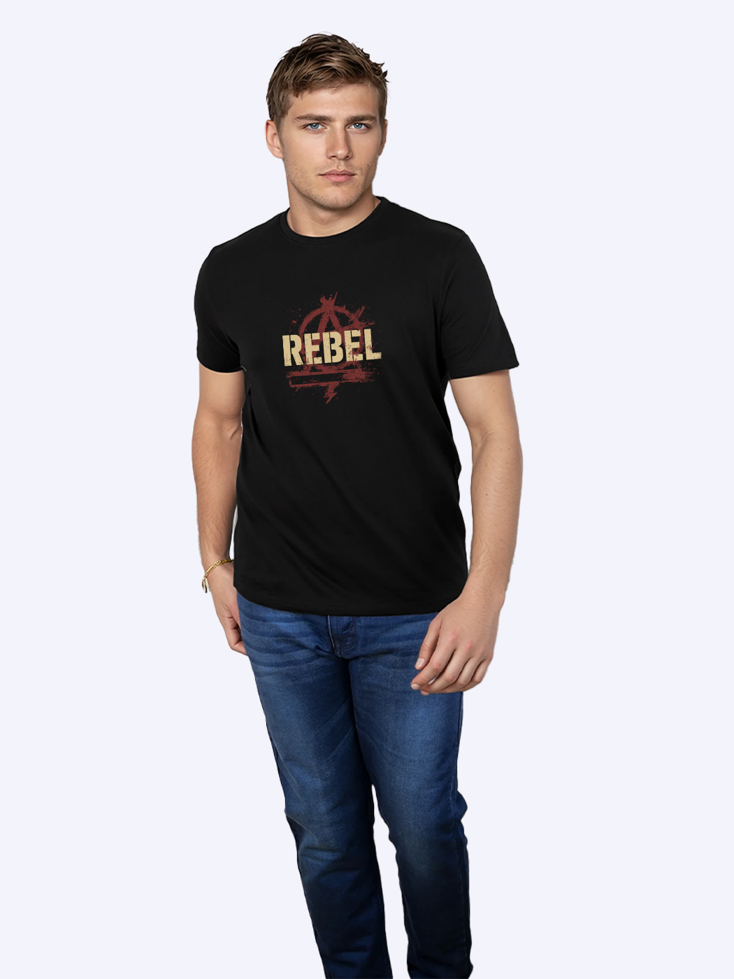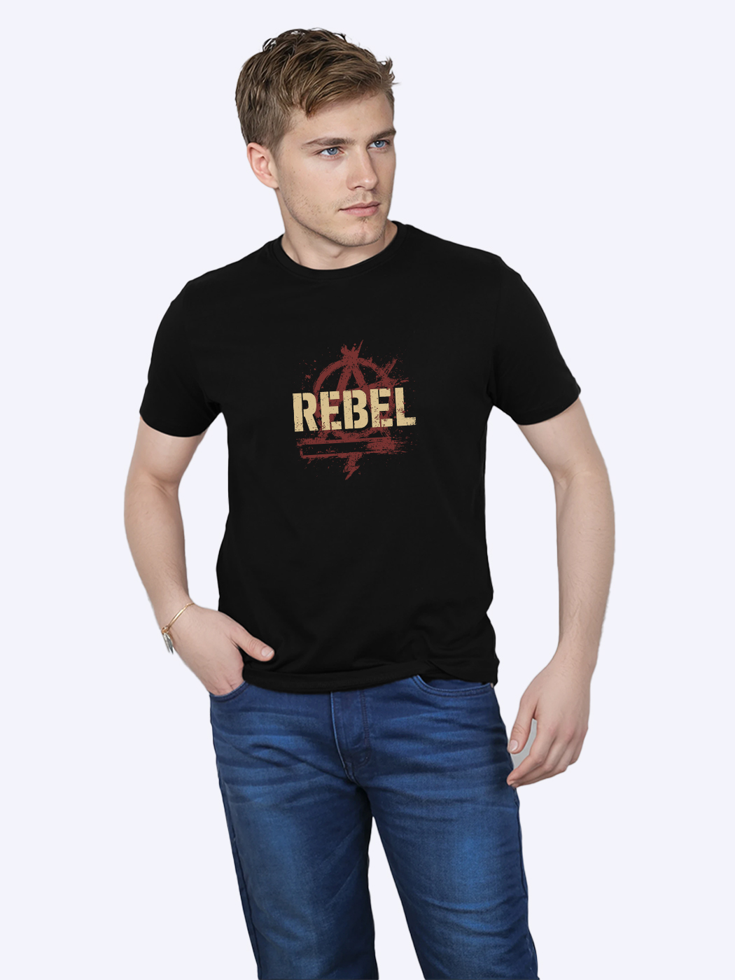 Rebel Printed T-Shirt for men with half sleeves. Perfect blend of comfort and casual style. Ideal for everyday wear, parties, or gifting.