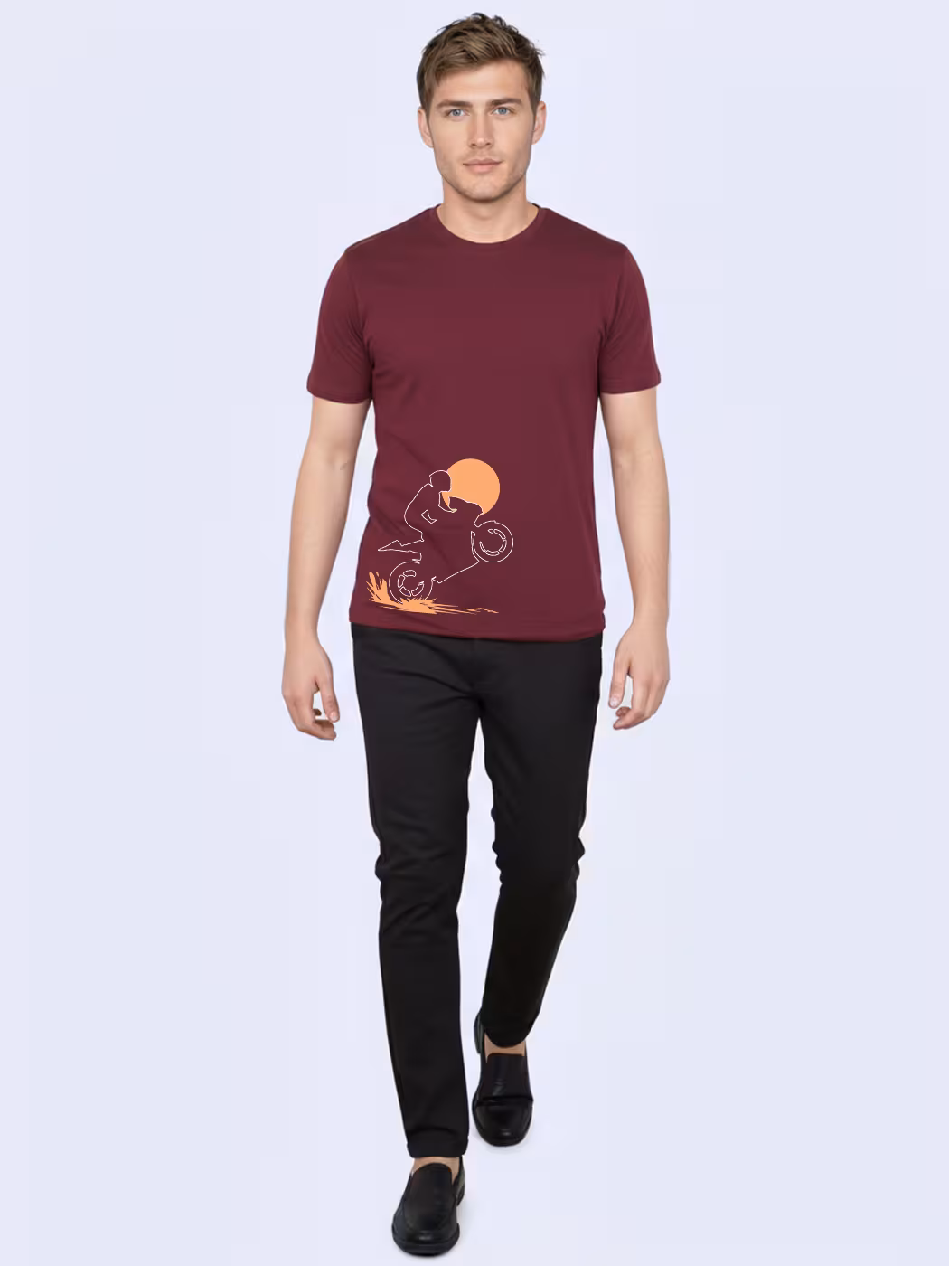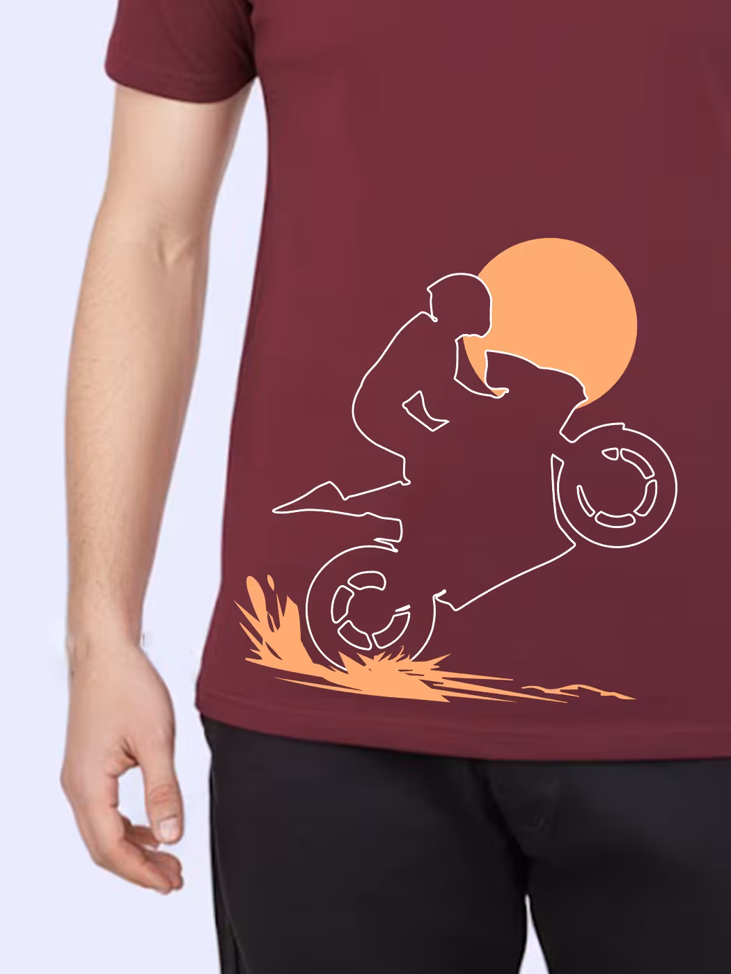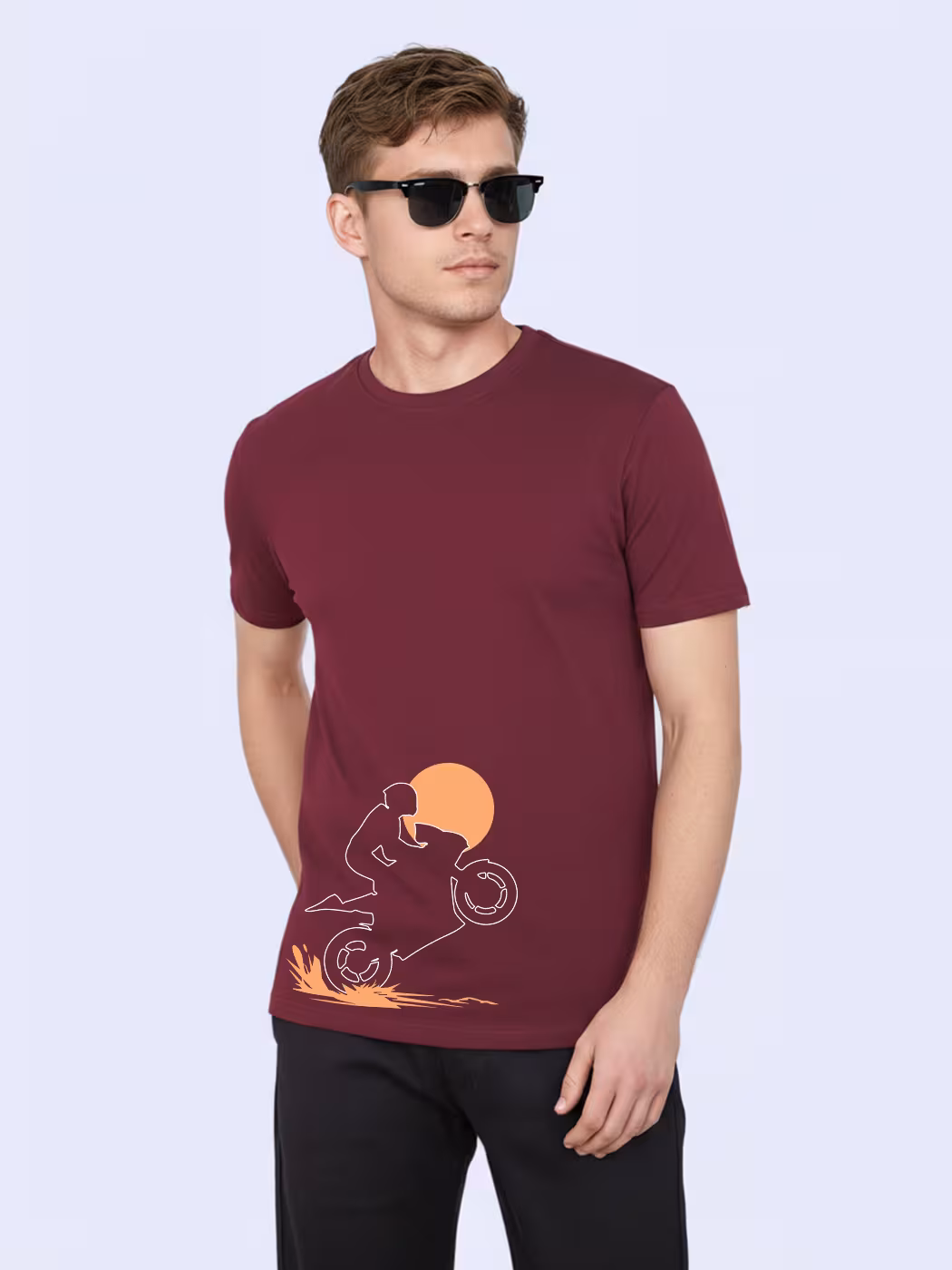 The Ride T-Shirt For Men – Half Sleeve blends style and comfort with minimalist motorcycle-inspired graphics, soft cotton fabric, and a perfect fit for everyday rides or casual adventures.
