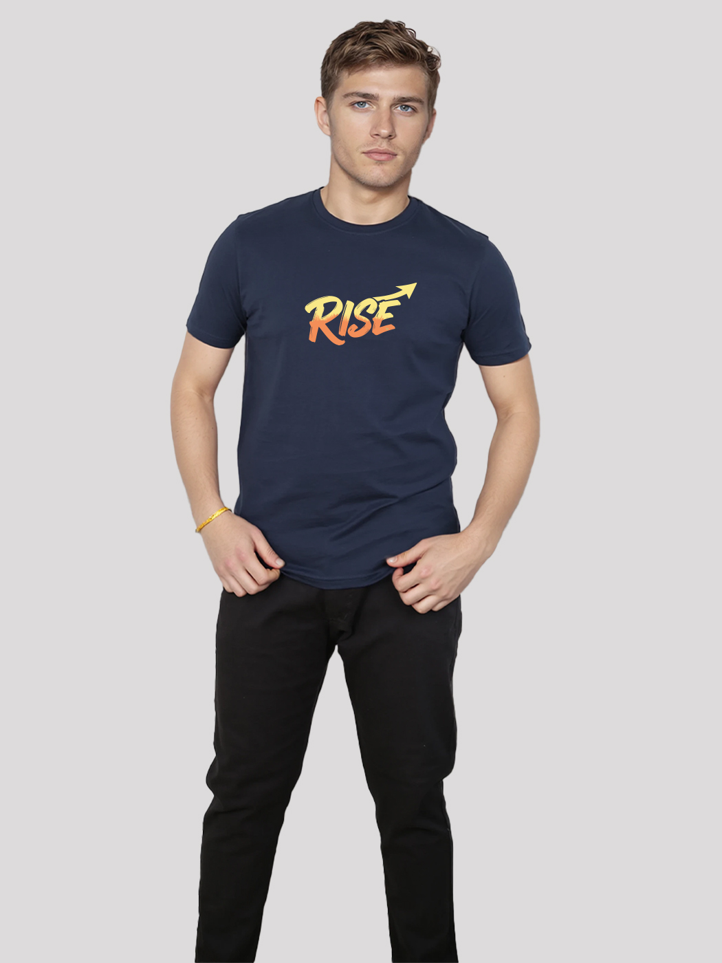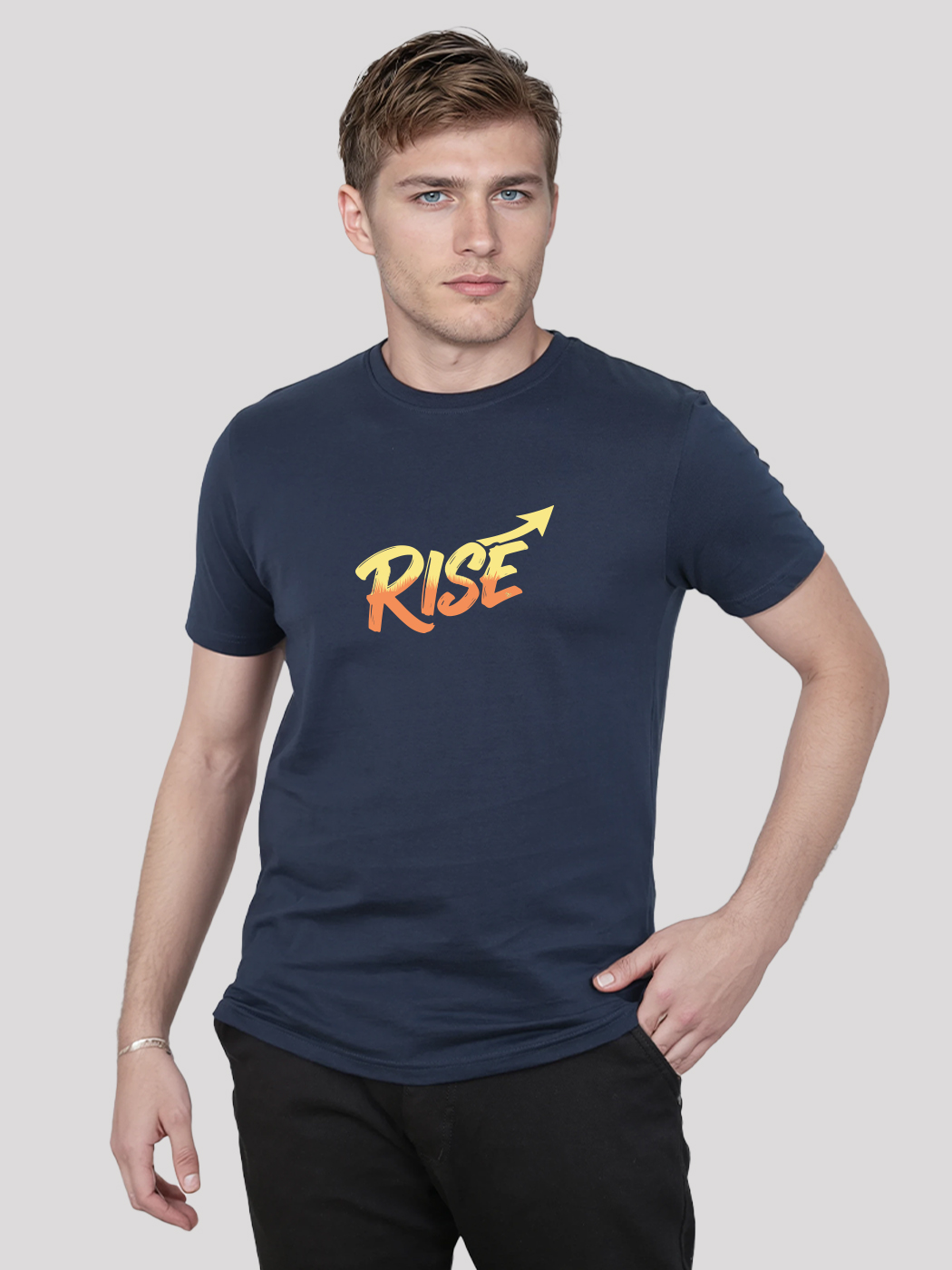 Rise Printed T-Shirt for men with half sleeves. Perfect blend of comfort and casual style. Ideal for everyday wear, parties, or gifting.