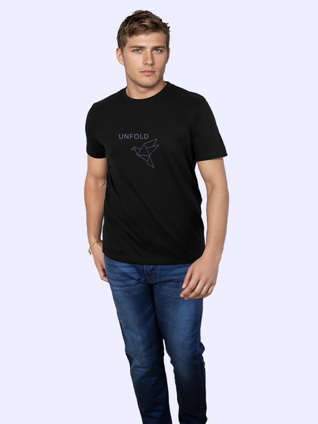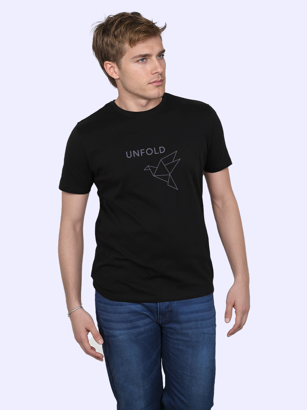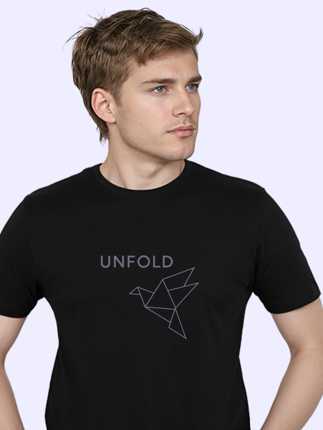 Unfold T-Shirt for men with half sleeves. Perfect blend of comfort and casual style. Ideal for everyday wear, parties, or gifting.