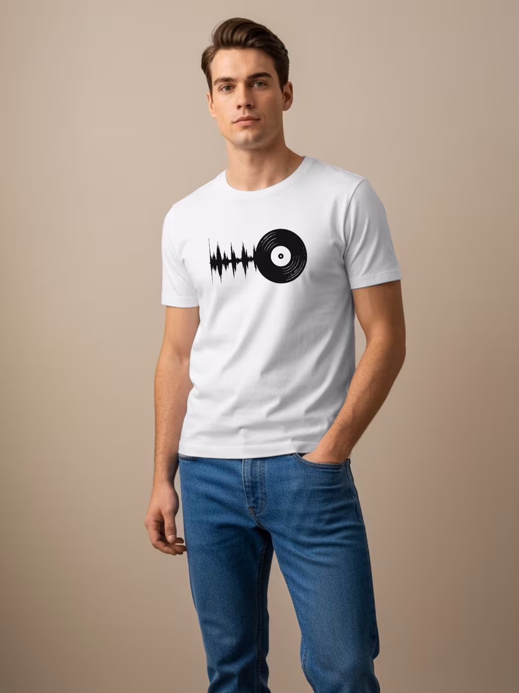 Vinyl Graphic Printed T-Shirt for men with half sleeves. Perfect blend of comfort and casual style. Ideal for everyday wear, parties, or gifting.