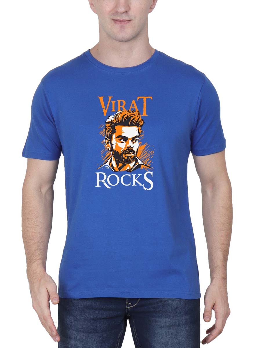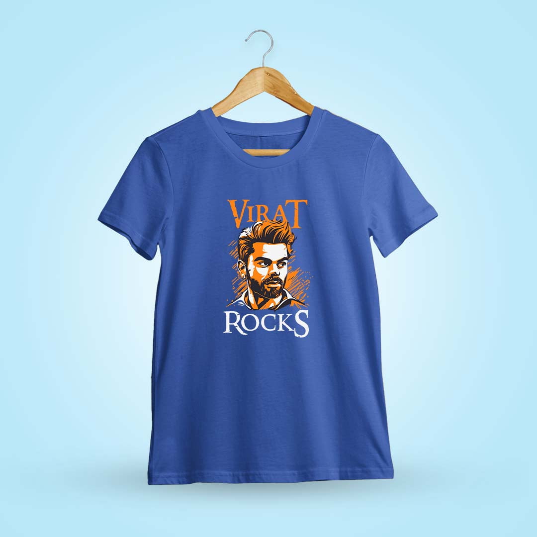Rock your cricket fandom with Virat Rocks Kohli T-Shirt. Bold graphics celebrate Virat Kohli’s electrifying charisma and skill on the field.