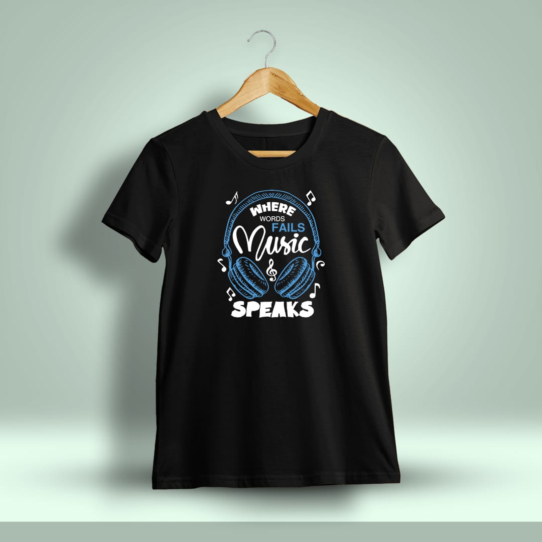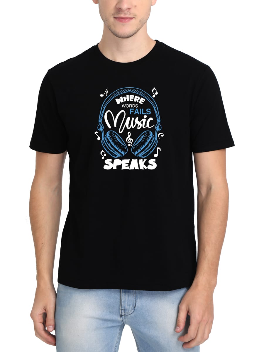 Where Words Fail Music Speaks T-Shirt for Men features a meaningful design for music enthusiasts. Soft cotton and half sleeves provide comfort and style all day.